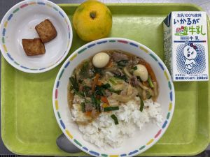 10月17日(金)の給食 2025.10.17 今日の給食 ごはん 牛乳 中華丼 あつあげの中華だれかけ みかん 今日は、早生みかんがでました。 早生みかんは、10月中旬から11月下旬にかけて収穫されます。 甘味と酸味のバランスが丁度よく児童たちも喜んで食べていました。 « 前へ一覧へ 次へ » 関連する学校生活 11月14日(金)の給食 2025.11.14 今日の給食 11月12日(水)の給食 2025.11.12 今日の給食 11月11日(火)の給食 2025.11.11 今日の給食 11月10日(月)の給食 2025.11.10 今日の給食 学校生活 学校行事 トピック 安心・安全のために 今日の給食