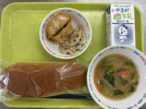 11月4日(火)の給食 2025.11.04 今日の給食 黒糖パン 牛乳 あげギョーザ 中華みそスープ れんこんの中華だれかけ 今日の給食では、あげギョーザがでました。 あげギョーザは、調理員さんが1つ1つ丁寧に揚げてくれました。 児童たちも喜んでたべていました。 « 前へ一覧へ 次へ » 関連する学校生活 11月14日(金)の給食 2025.11.14 今日の給食 11月12日(水)の給食 2025.11.12 今日の給食 11月11日(火)の給食 2025.11.11 今日の給食 11月10日(月)の給食 2025.11.10 今日の給食 学校生活 学校行事 トピック 安心・安全のために 今日の給食