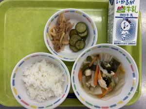 11月12日(水)の給食 2025.11.12 今日の給食 ごはん 牛乳 豚肉のコチジャンいため 鶏肉とはるさめのスープ きゅうりのナムル 今日の給食では、はるさめがでました。 はるさめは、じゃがいもや、さつまいものでんぷんなどが原料になっています。 « 前へ一覧へ 次へ » 関連する学校生活 11月14日(金)の給食 2025.11.14 今日の給食 11月12日(水)の給食 2025.11.12 今日の給食 11月11日(火)の給食 2025.11.11 今日の給食 11月10日(月)の給食 2025.11.10 今日の給食 学校生活 学校行事 トピック 安心・安全のために 今日の給食