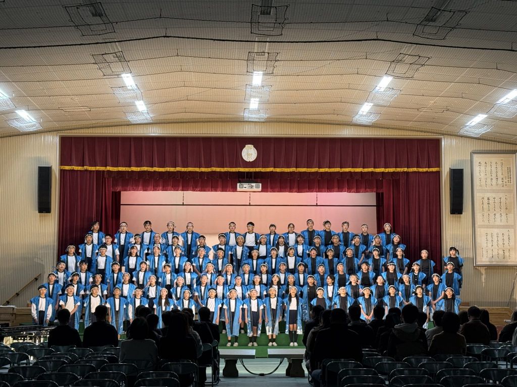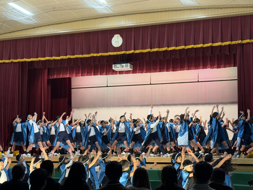 また、学芸会練習期間であることから、五年生の子供たちが歌をプレゼントし、スポーツデーで披露したソーラン節でおもてなしすることができました。