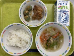 3月18日(水)の給食 2026.03.18 今日の給食 ごはん 牛乳 豚肉のたつたあげ 五目汁 よもぎだんご きな粉 今日は、今年度最後の給食の日でした。 児童たちから調理員さんへ「1年間ありがとうございました」と感謝の言葉が伝えられていました。 « 前へ一覧へ 関連する学校生活 3月18日(水)の給食 2026.03.18 今日の給食 3月16日(月)の給食 2026.03.17 今日の給食 3月17日(火)の給食 2026.03.17 今日の給食 3月10日(火)の給食 2026.03.17 今日の給食 学校生活 学校行事 トピック 安心・安全のために 今日の給食