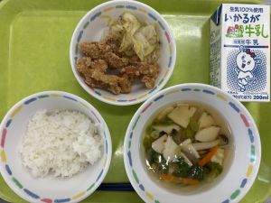 4月21日(火)の給食 2026.04.21 今日の給食 ごはん 牛乳 鶏肉のたつたあげ 五目汁 キャベツの梅風味 今日は、鶏肉のたつたあげがとても人気でした。 多くの児童がおかわりをしてくれていました。 « 前へ一覧へ 関連する学校生活 4月21日(火)の給食 2026.04.21 今日の給食 4月20日(月)の給食 2026.04.20 今日の給食 4月17日(金)の給食 2026.04.20 今日の給食 4月16日(木)の給食 2026.04.20 今日の給食 学校生活 学校行事 トピック 安心・安全のために 今日の給食