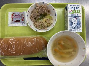 4月23日(水)の給食 2026.04.23 今日の給食 コッペパン いちごジャム スープ 豚肉のガーリック焼き ツナとキャベツのソテー « 前へ一覧へ 関連する学校生活 4月23日(水)の給食 2026.04.23 今日の給食 4月22日(水)の給食 2026.04.22 今日の給食 4月21日(火)の給食 2026.04.21 今日の給食 4月20日(月)の給食 2026.04.20 今日の給食 学校生活 学校行事 トピック 安心・安全のために 今日の給食