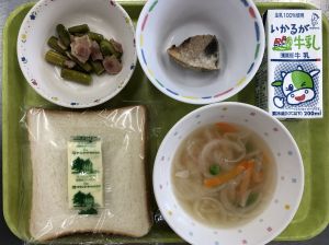5月30日(月)の給食 2022.05.31 今日の給食 食パン かつおのガーリックマヨネーズ焼き スープ グリーンアスパラガスとベーコンのソテー ソフトマーガリン 牛乳 アスパラガスの茎にある三角の部分は、はかまといいます。 « 前へ一覧へ 次へ » 関連する学校生活 11月14日(金)の給食 2025.11.14 今日の給食 11月12日(水)の給食 2025.11.12 今日の給食 11月11日(火)の給食 2025.11.11 今日の給食 11月10日(月)の給食 2025.11.10 今日の給食 学校生活 学校行事 トピック 安心・安全のために 今日の給食